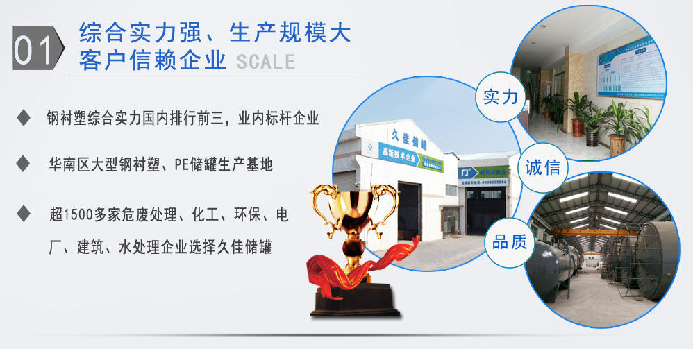 東莞市久佳防腐設(shè)備有限公司是華南地區(qū)大型規(guī)模的防腐環(huán)保儲(chǔ)存設(shè)備制造廠(chǎng)家,公司生產(chǎn)廠(chǎng)房達(dá)8000余平方米,集研發(fā)、生產(chǎn)、銷(xiāo)售于一體,有一支技術(shù)精湛、設(shè)計(jì)能力強(qiáng)的專(zhuān)業(yè)隊(duì)伍。國(guó)內(nèi)領(lǐng)先的生產(chǎn)工藝和完善的檢測(cè)設(shè)備,為產(chǎn)品提供了優(yōu)良的保證。產(chǎn)品廣泛應(yīng)用于石化、環(huán)保、釀造、水處理、化工、醫(yī)藥、食品、煉油、發(fā)電等行業(yè),精益求精,品質(zhì)久佳!